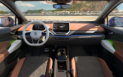 O interior do ID.4 foi criado de forma inteligente para oferecer a sua família uma impressionante sensação de espaço. Os bancos além de muito confortáveis possuem regulagem elétrica e função de memória. Já a iluminação ambiente permite você transformar o seu ID.4 em um verdadeiro lounge.